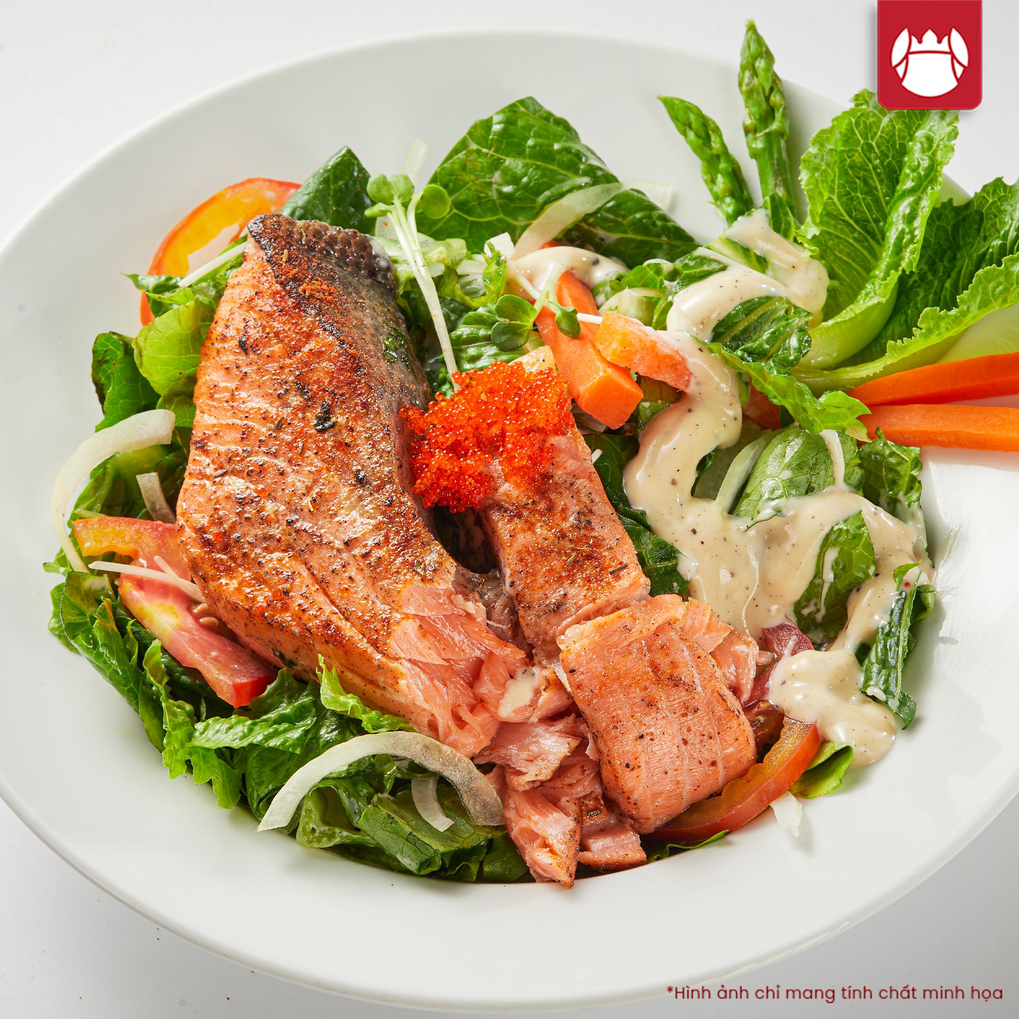 Để chế biến nên món Salad cá hồi Na Uy, Vua Cua sử dụng loại cá hồi được nhập khẩu từ nguồn nguyên liệu uy tín, đảm bảo chất lượng nhờ vào quy trình kiểm duyệt nghiêm ngặt. Salad Cá Hồi Na Uy là một món ăn bổ dưỡng được làm từ cá hồi cao cấp và rau xanh tươi mát.